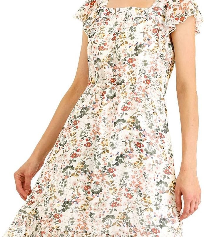 The Saonta K Women’s Ruffled Floral Smocked Waist Layered Tiered Chiffon Dress…