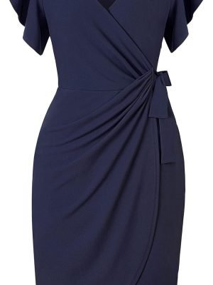 Womens Deep V Neck Ruffle Sleeve Sheath Casual Cocktail Party Work Faux Wrap Dress
