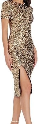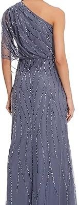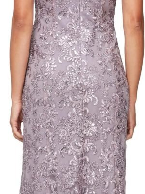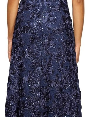 Women’s Long Rosette Mother of The Bride Dress with Short Sleeves, Wedding Guest (Petite and Regular Sizes)