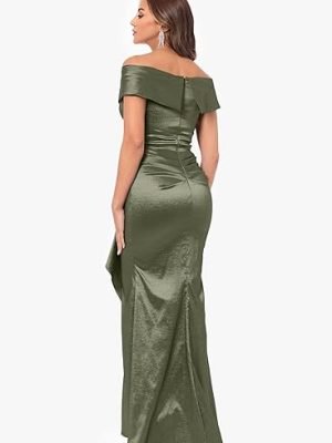 Women’s Off-The-Shoulder Sweetheart Neck Taffeta Gown with Side Sweep Detail