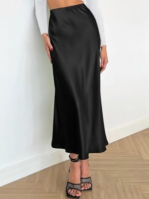 Saonta 2024 Women Long Satin Summer Spring Skirt Silk Elegant High Waist Cocktail Party Wedding Flared A-Line Midi Skirts