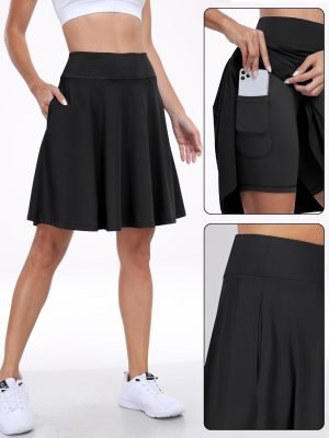 Saonta High Waisted Golf Skirts for Women A Line Tennis Athletic Casual Skort Skirt with Shorts Pockets