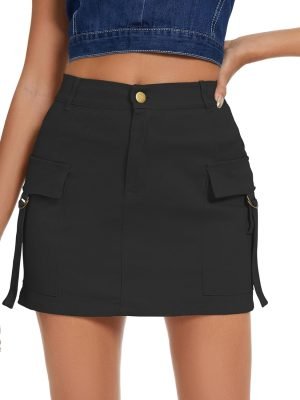 Saonta High Waisted Saonta Mini Skirt Black Denim Skirt Women Bodycon Denim Mini Skirt Y2K Button Black Mini Skirt Dressy Casual Y2K Jean Skirt for Women with Pockets Black Large