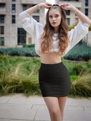Saonta Women’s 2 Piece Skirts Basic Versatile Stretchy Ribbed Casual High Waist Mini Skirt