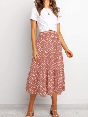 Saonta Women’s Boho Floral High Waist Split A Line Midi Skirt