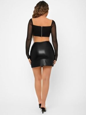 Saonta Women’s Faux PU Leather High Waist Split Mini Bodycon Pencil Skirt