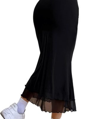 Saonta Women’s Lettuce Trim High Waist Mesh Fishtail Bodycon Long Skirt