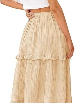Saonta Women’s High Waist Frill Trim A Line Swing Flowy Summer Midi Skirts
