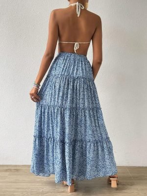 Saonta Women’s Floral Print Elastic High Waist Pleated Ruffle Flowy Long Skirts